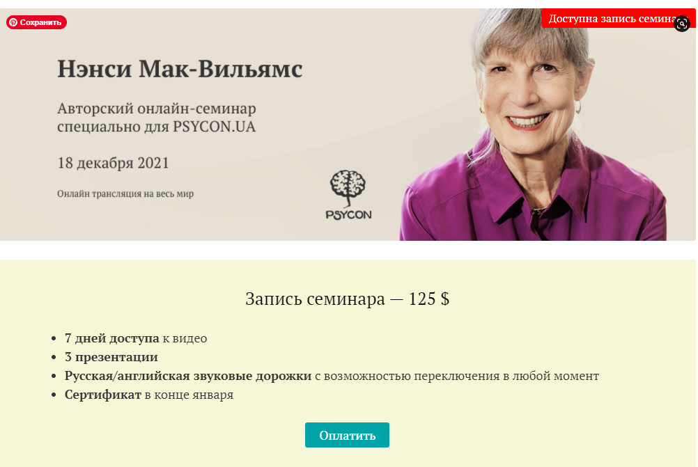 - Нэнси Мак-Вильямс является почетным членом Американской психоаналитической ассоциации, Московского психоаналитического общества, Института психоаналитической психотерапии в Турине, Италия, и Варшавской научной ассоциации психодинамической психотерапии.