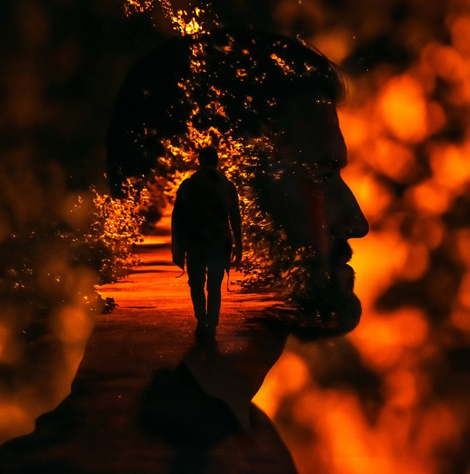 Во второй пакет я включил мужской портрет, и, чтобы было интересней, сделал съемку в ночном городе. Длительность более часа. Мы с моделью прогулялись по ночному провинциальному городу и попробовали снять необычные кадры доступными средствами. Поискали интересные фоны в обыденных местах, посветили цветным светом, создавая единую геометрическую структуру изображения с абстрактными элементами. Поэкспериментировали с режимами мультиэкспозиции, попробовали поснимать колоритный мужской портрет в темной подворотне. И в финале сделали съемку в парке, где у нас получился практически библейский сюжет. В итоге около 11 фотографий различных вариаций и ракурсов.